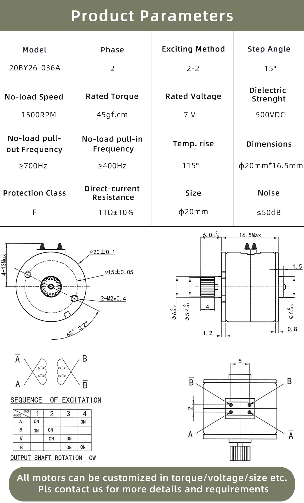 • Rated Torque: 45 gf·cm