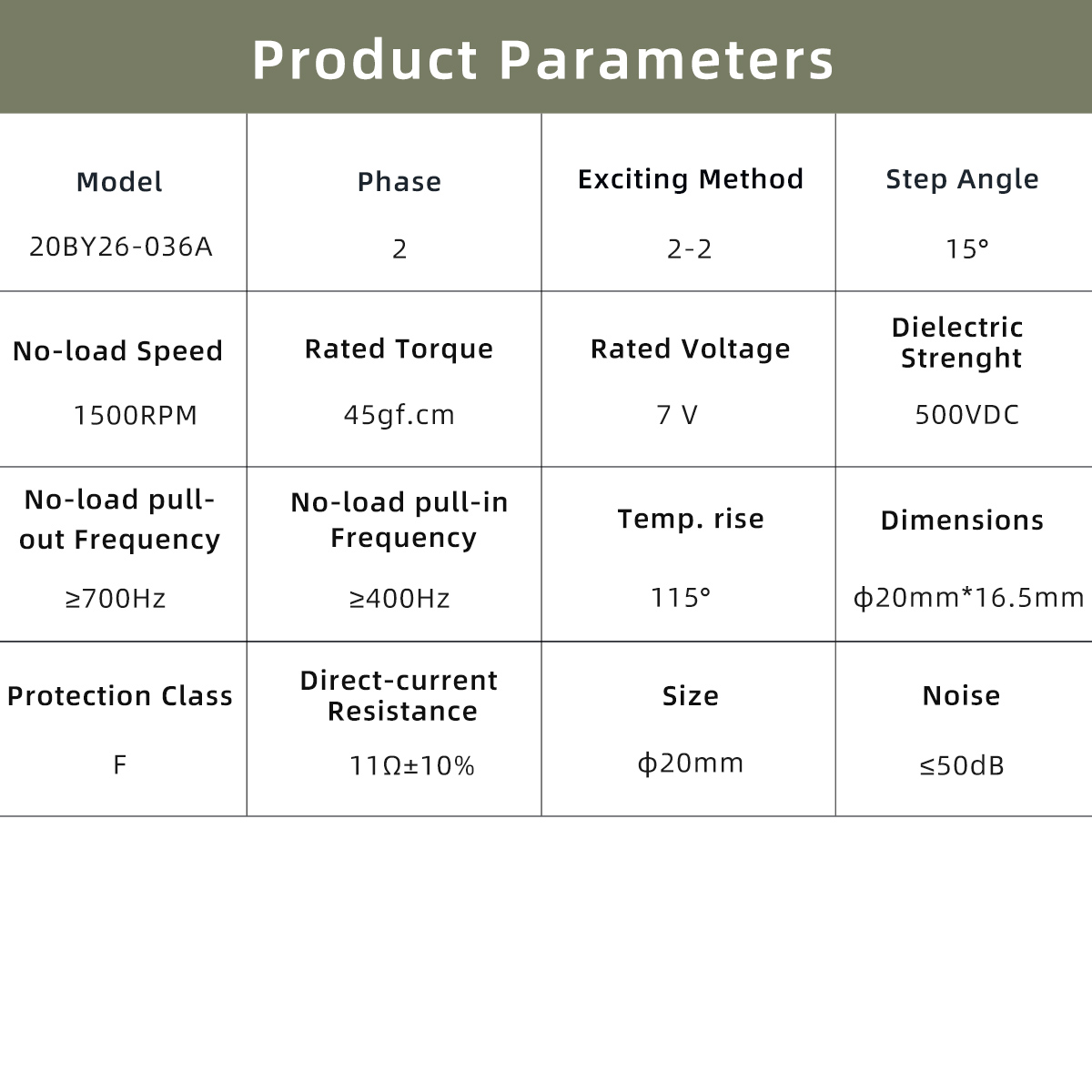 • No-load Pull-out Frequency: ≥ 700 Hz