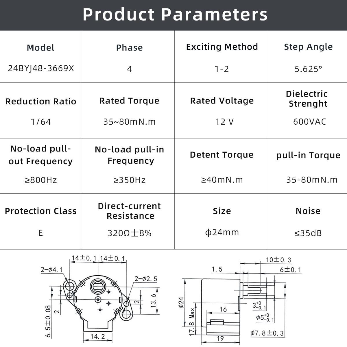 BYJ Stepper Motor 24BYJ48-3669Z is engineered for applications requiring accurate step positioning, quiet performance, and compact mechanical integration. The motor adopts a 4-phase, 1–2 exciting method with a 5.625° step angle, paired with a 1/64 reduction gearbox to balance positioning accuracy and output torque.
