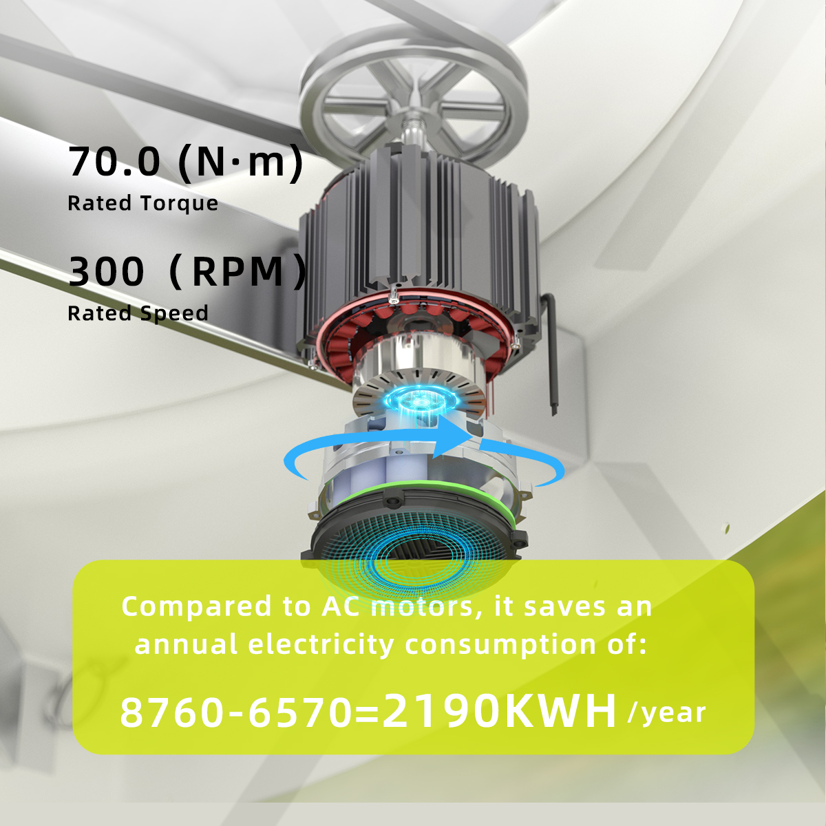 EC Fan System MAPQ-72EP-4R-01 is designed for applications requiring large-area airflow distribution, precise low-speed control, and long-term operational reliability. Powered at 380 VAC, it operates at a rated speed of 300 RPM with an adjustable speed range from 220 to 300 RPM, delivering 2.2 kW rated power while maintaining smooth, stable airflow.