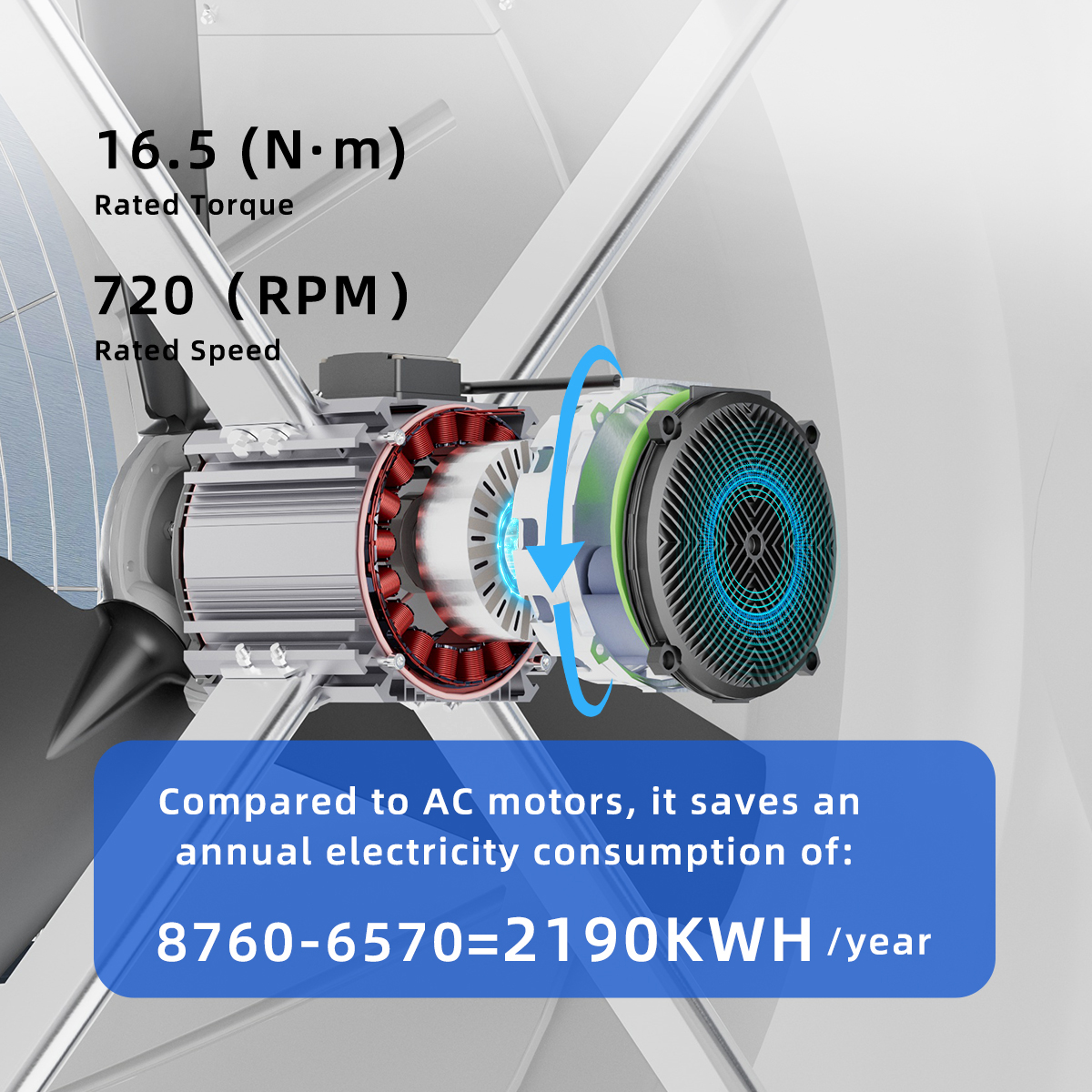 The MAPZ-50EE-4CC-01 is an EC fan system delivering efficient, speed-controllable airflow from 220 to 720 RPM with 1.1 kW rated power, operating at 380 VAC, designed for industrial and agricultural ventilation applications requiring precise airflow control and high reliability.
